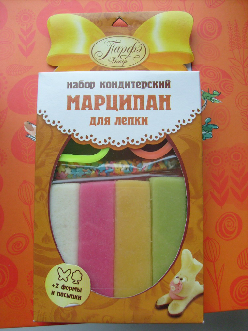 Марципановую массу мы купили впервые, открыли накануне праздника с тем, чтобы украсить кулич. На ощупь масса оказалась мягкая, пластичная, но достаточно липкая. Я слепила цветочки, старшая дочка - девочку с цыпленком, а младшая - катала и плющила шарики)) Для детского творчества масса не плоха, но в качестве сладости никому из нас не понравилась - слишком приторная. В холодильнике наши фигурки чуть затвердели, а, вот, когда мы достали их уже на Пасху, то буквально в течение пары часов они стали "растекаться", менять форму, так что держать долго на открытом воздухе я бы их не советовала. Если оценивать сей продукт по пятибальной шкале, то моя оценка "4-", но для 70 руб. - это совсем неплохо))