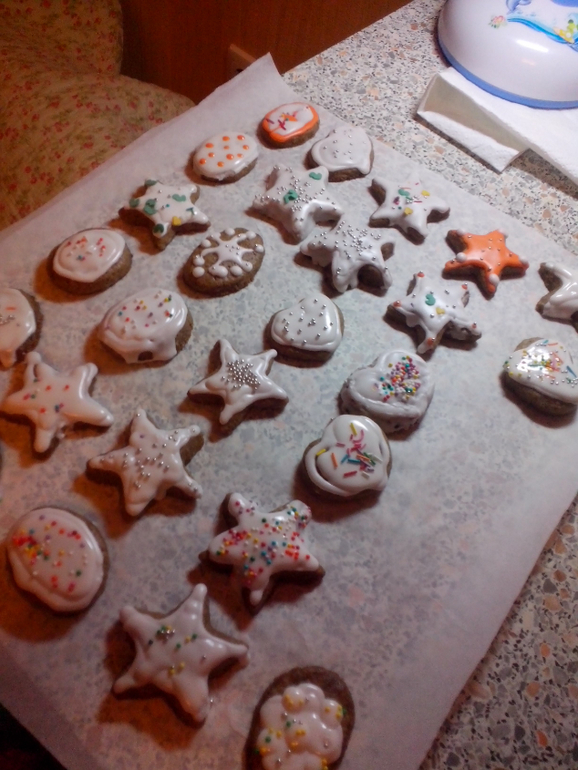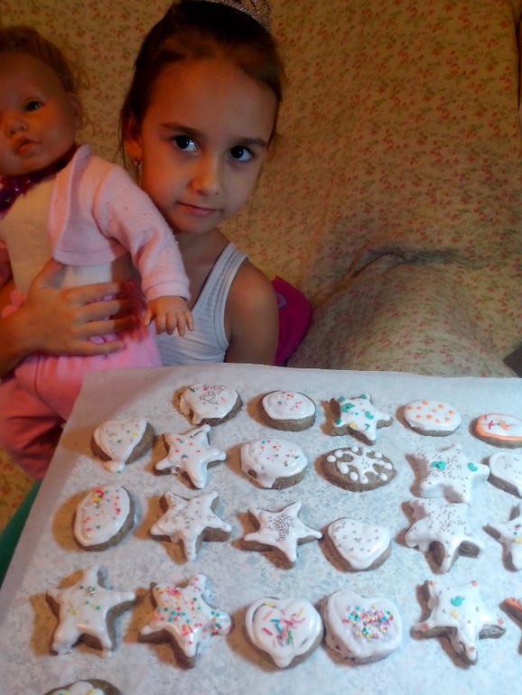Глазурь по рецепту,она сначала жидкая,потом засыхает довольно быстро. Украшали часа 1,5 с Лизой вдвоем. Хочу еще тесто для лепки сделать из Ypi