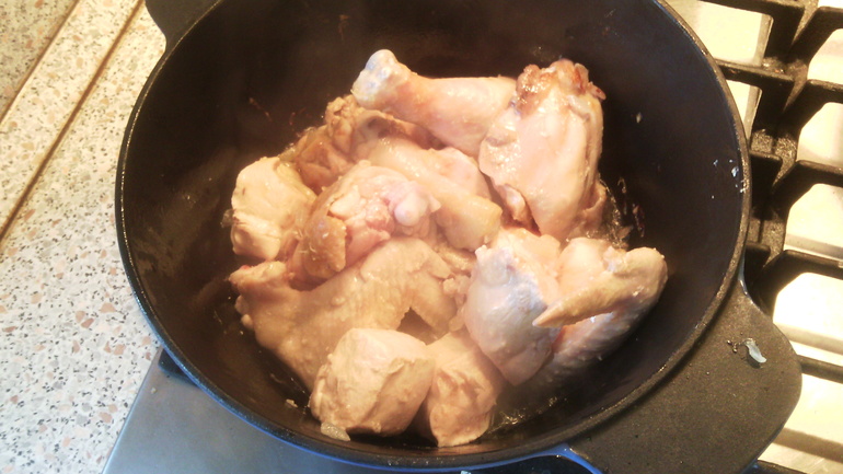 Курицу режем на порционные кусочки. важно, чтоб были все части: и крылья, и ноги, и грудка... спинку можно на бульон отложить.