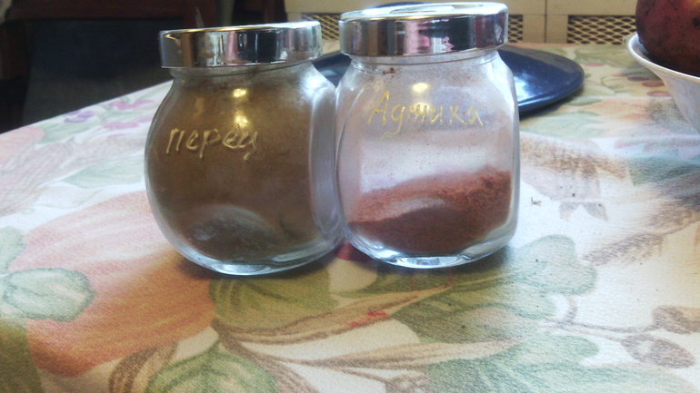 Теперь берем приправы. Я обычно беру перец черный молотый и сухую аджику.
