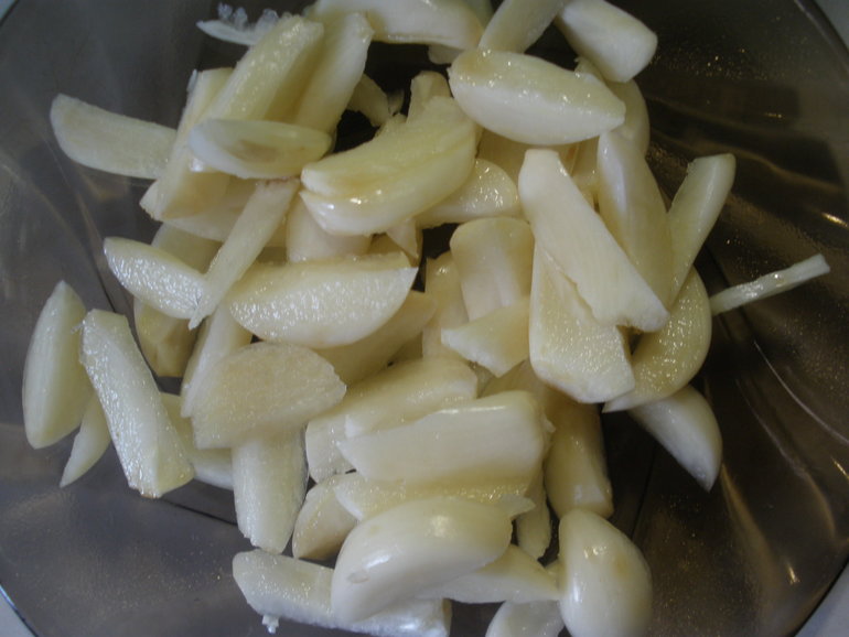 Чеснок порезать на небольшие дольки.
