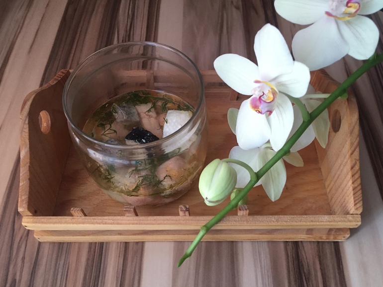 Нарезать лук, картофель и зелень. Из рыбы вынуть косточки и нарезать кубиками. Морковь натереть на терке. В воду добавить рыбу, картофель, лук, морковь и чеснок. Варить до готовности картофеля 15-20 минут. Добавить специи и зелень. Перемешать и дать покипеть еще 5 минут.