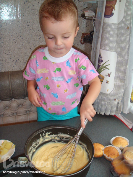 Очень захотелось чего-то такого... Из задумки получились кексы, рулет и индейка с овощами :) Внук Вовик как всегда активно помогал процессу: