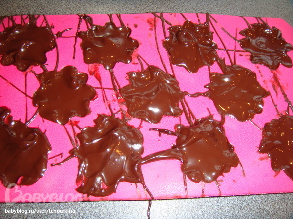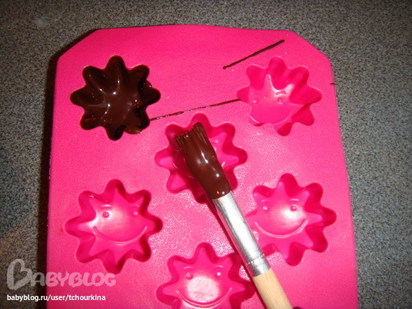 Наносим растопленный шоколад кисточкой в 3-5 слоев (каждый слой застывает в холодильнике):