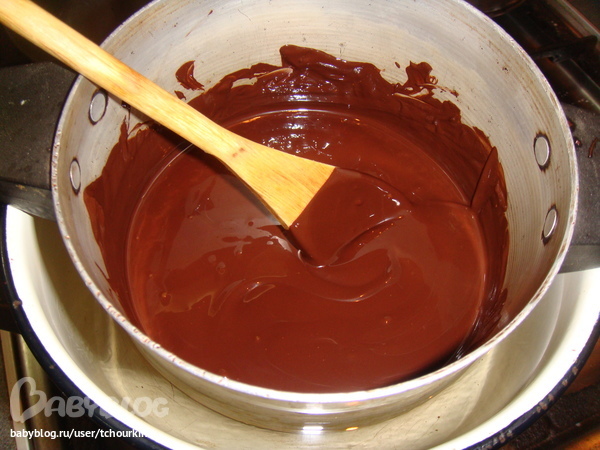Ломаем шоколад и топим на водяной бане (60 градусов) :