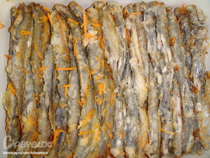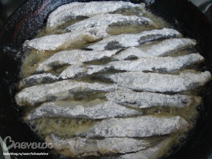 Рыбку почистить от головы и внутренностей, промыть, обсушить. Обвалять в сеси муки и соли, обжарить на растительном масле: