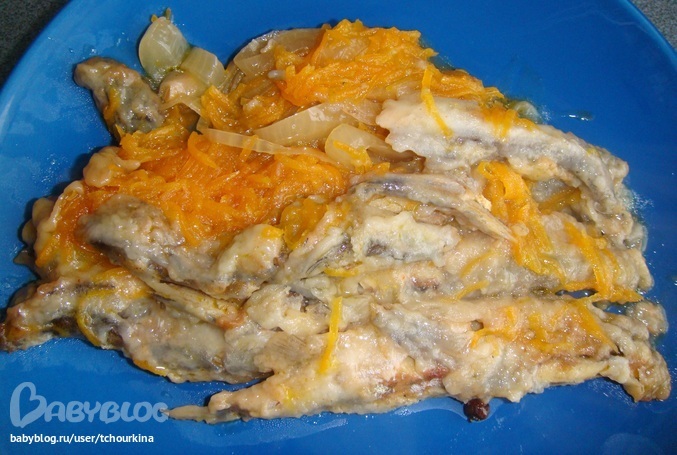 На овощную подушку выложить поджаренную рыбку: