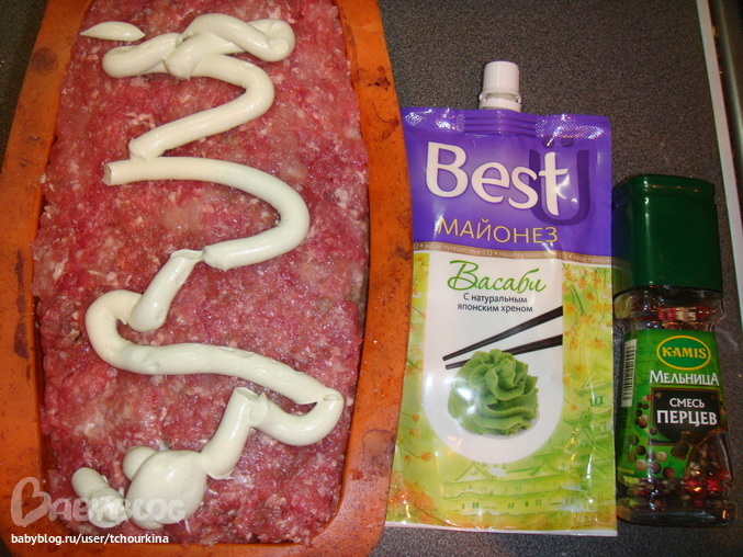И воткнула их ножками вниз в слой фарша: