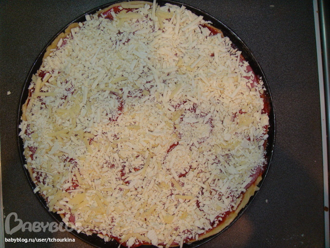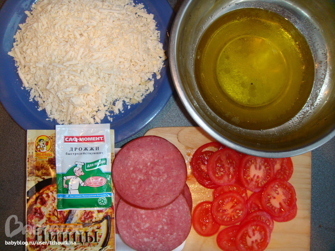 Ни одна неделя не ободится у нас без пиццы, вот такие мы пиццееды :) На этот раз делала сразу и большую пиццу и минипиццы. Про тесто много раз уже писала: 1 часшка теплой воды, пол чашки оливкового масла первого отжима, щепотка соли, сухие дрожжи и мука. Просто все сразу замесить и раскатывать, всходить ему не надо: