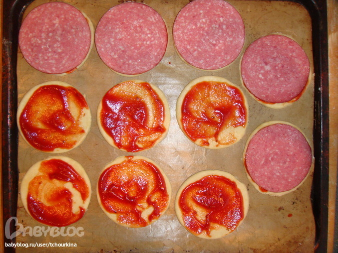 И тоже самое сделать на минипиццах (тесто раскатать и нарезать кружки размером с колбасу):