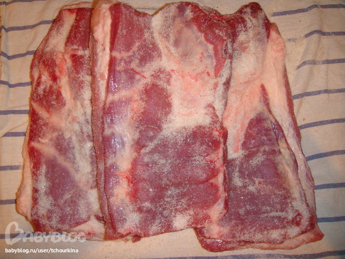 Мясо разделала очень рационально. Сначала отделила ровные большие бруски свиной грудинки для засолки и дальнейшего копчения (подробно покажу в следующем посте).
