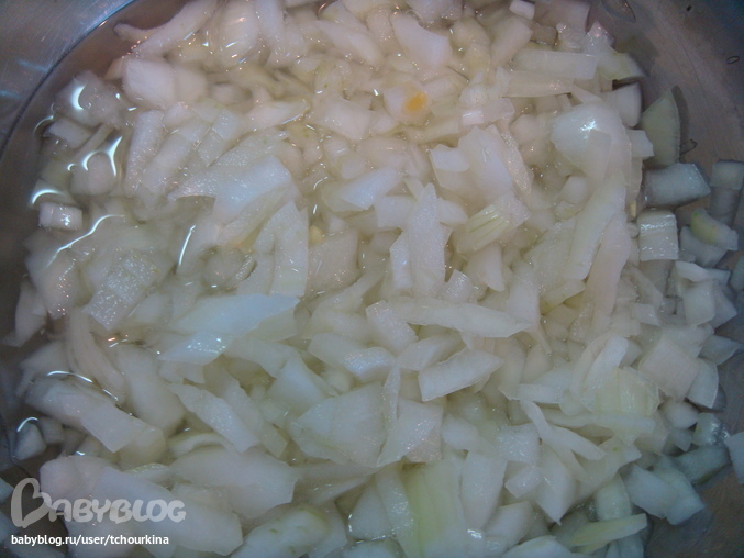 Пока рыба остывает, маринуем лук: мелко нарезаем и кладем в воду с сахаром, солью, уксусом: