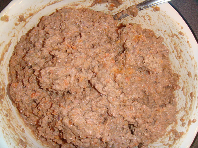 Остудить, дважды пропустить через мясорубку, тщательно перемешать: