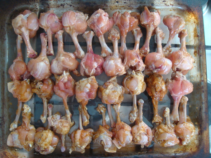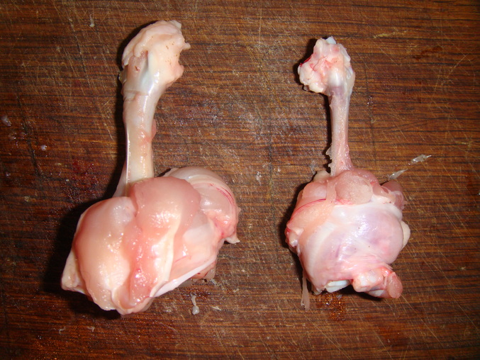 Тонкие кончики в этом рецепте не понадобятся, они хороши на бульон. Из средней части вытащить тонкую кость, оставить ту, что потолще. Мясо вывернуть на кости "шариком":