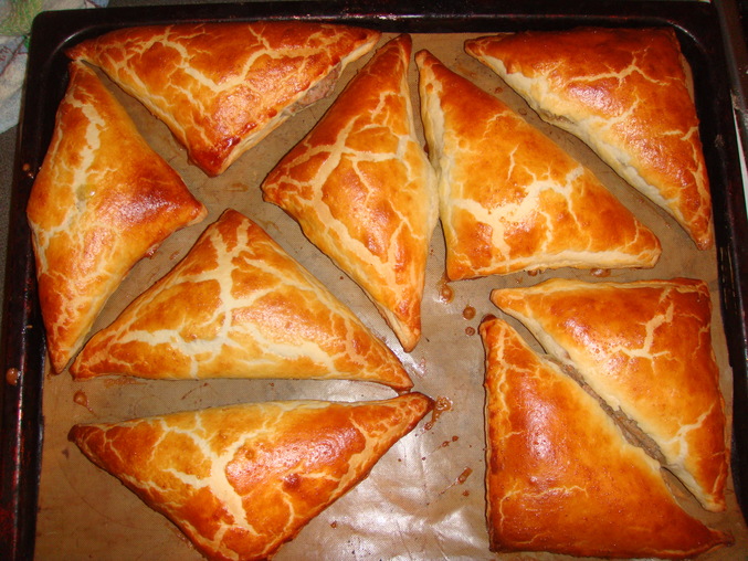 Сформировать пирожки, выложить на противень, смазать разбитым яйцом: