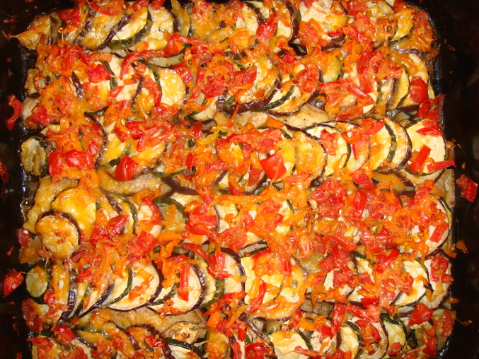 Поэтому просто прикрыть форму фольгой и отправить на 10 минут в духовку. А потом еще на 5 минут без фольги. Готово:
