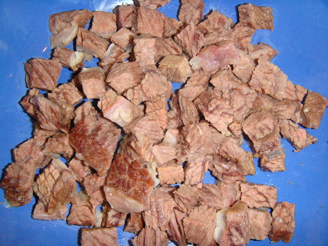 Переложить в бульон, из которого уже вытащено готовое мясо (или залить водой). Варить 10 минут после закипания. Если используется вода, посолить и поперчить суп по вкусу. Мясо отделить от костей, нарезать кубиками, вернуть в суп: