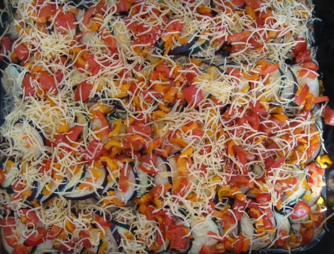 Сверху присыпать сыром твердых сортов, натертым на мелкой терке: