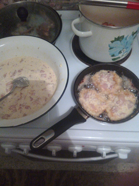Жарим на хорошо разогретой сковороде. Выкладывает ложкой как оладьи. На вкус очень нежные и сочные