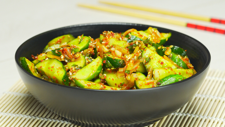 Многообразие корейской кухни поражает воображение даже знатного гурмана. Рецептов приготовления огурцов в корейской кухне множество и каждый рецепт особенный. Это только на первый взгляд кажется, что основа корейской кухни острые специи. Знатоки подтвердят, каждое блюдо имеет свой, неповторимый аромат. Острые огурцы по-корейски - аппетитная закуска, с богатым пикантным вкусом жареных кунжутных семян и правильными пропорциями специй, благодаря которым эти огурцы приобретают свой неповторимый и настоящий смак. Приятного аппетита!