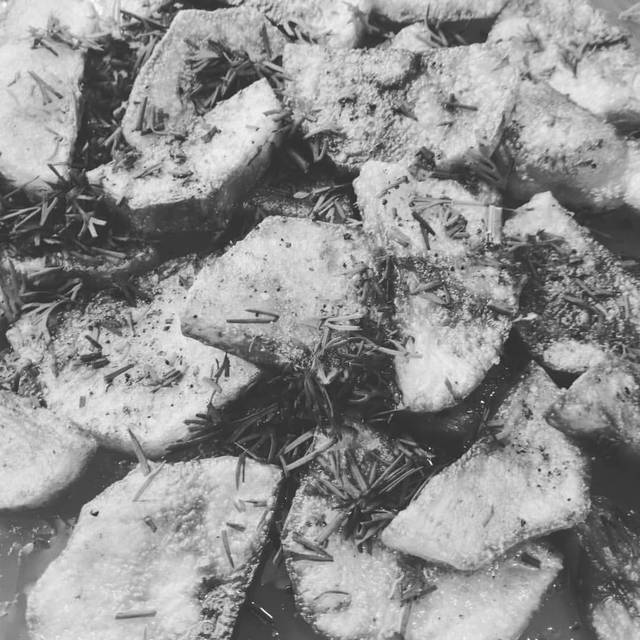 3.) На среднем огне в достаточном количестве масла обжарить картофель по 1 минуте с каждой стороны.