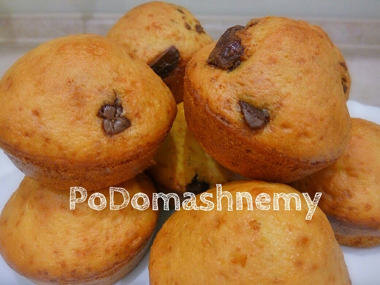 Для кексов (маффинов) с начинкой добавьте по 1 ст.л. теста, затем добавьте шоколад (ягоды, сухофрукты, орехи) и накройте его половиной столовой ложки теста.