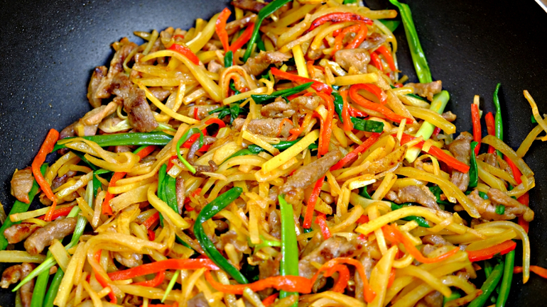 Очень оригинальный рецепт жареной картошки с мясом. Вкусный ужин или обед, которым порадует ваших родных своим внешним видом и отменным сбалансированным вкусом.