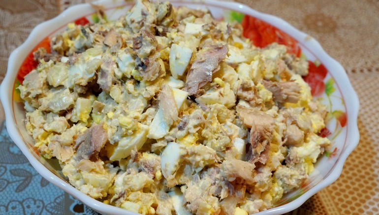 Рыбный салат из консервов