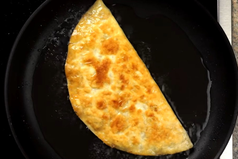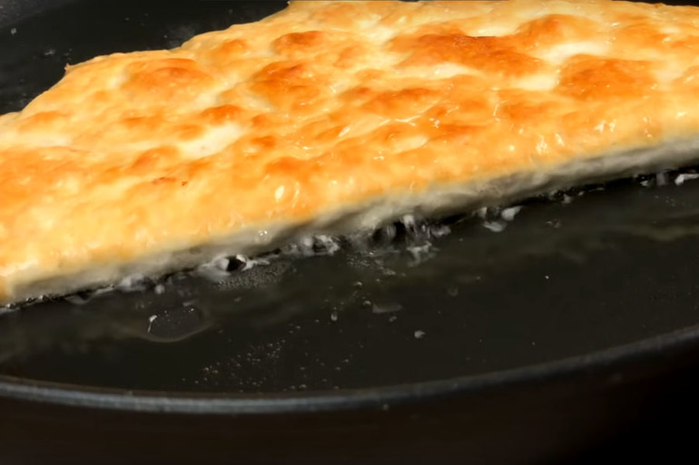 Жарить такой чебурек нужно по 2-3 минуты с каждой стороны.