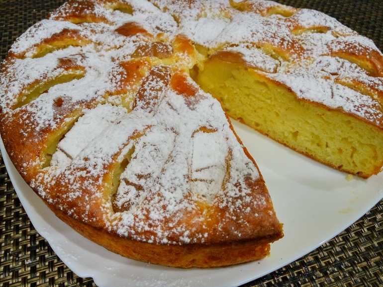 Шарлотка с яблоками и творогом готова! Всем приятного чаепития.