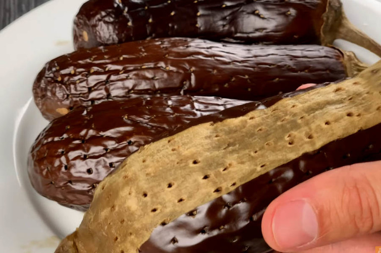 Баклажаны нужно остудить и очистить от шкурки.