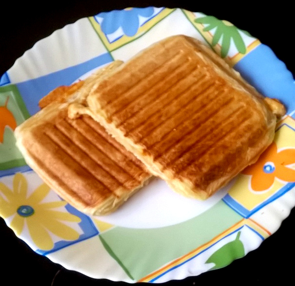 Слоеное тесто + баночка скумбрии+отварное яйцо и немного натертого сыра.