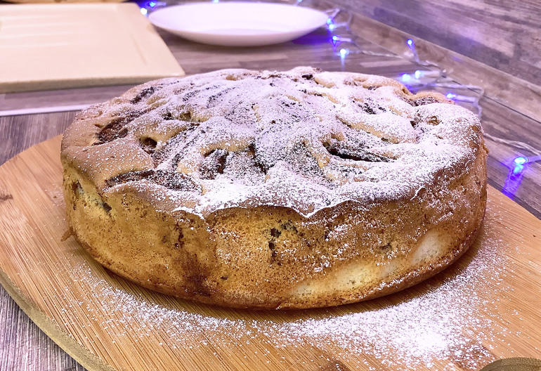Выпекать 40 минут, готовность проверить шпажкой, если шпажка достаётся из центра сухой, то можно доставать пирог.