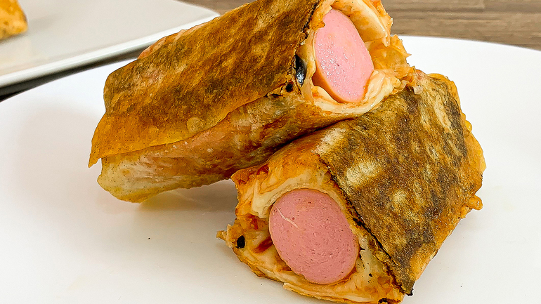 Пицца хот-дог в лаваше. Быстрый, вкусный и сытный перекус. Рецепт на 4 порции.