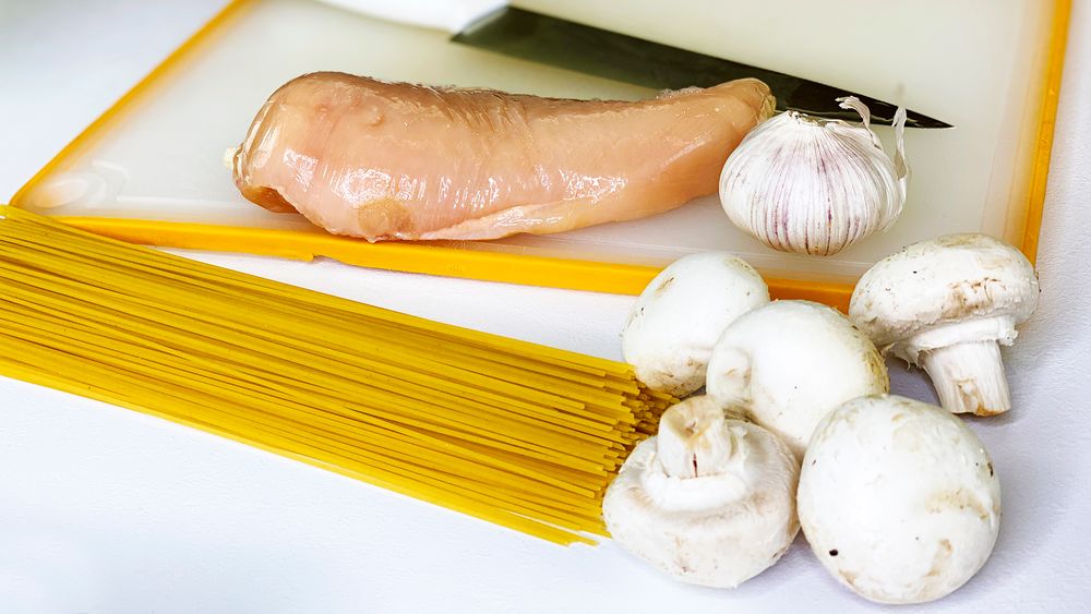 Рецепт быстрого ужина за 10 минут - Паста с курицей и грибами в сливочном соусе