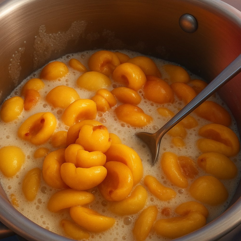 Выкладываем абрикосы в кастрюлю с толстым дном, вливаем лимонный сок, сахар, ванилин и воду (если решили делать пожиже). Ставим на средний огонь, доводим до кипения. Как закипит варим минут 10, снимая пенку. Потом снимаем с огня и даём остыть.