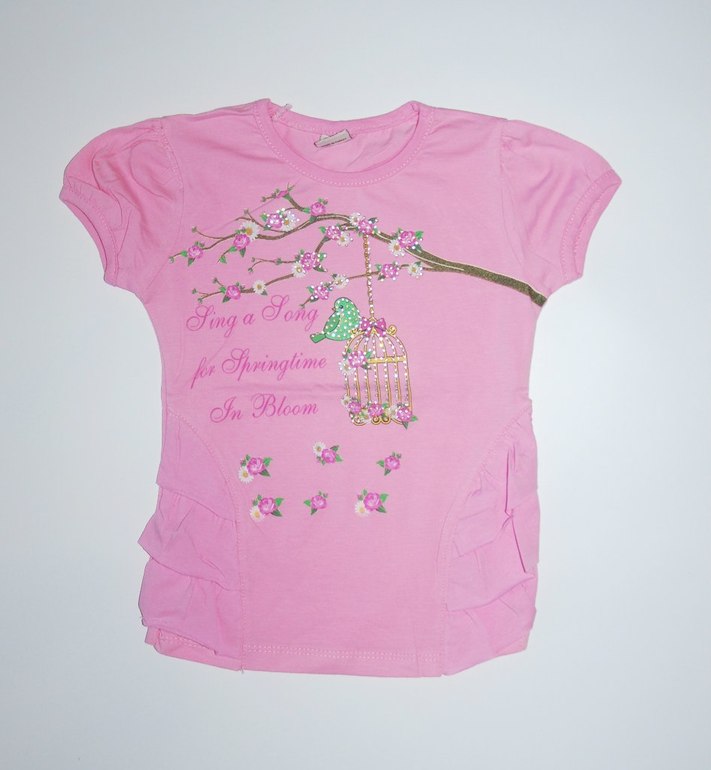 Футболка. Цвет коралл + бабочки(пришитые). 95% хлопок, 5% лайкра. Размеры: 92, 104, 116, 128