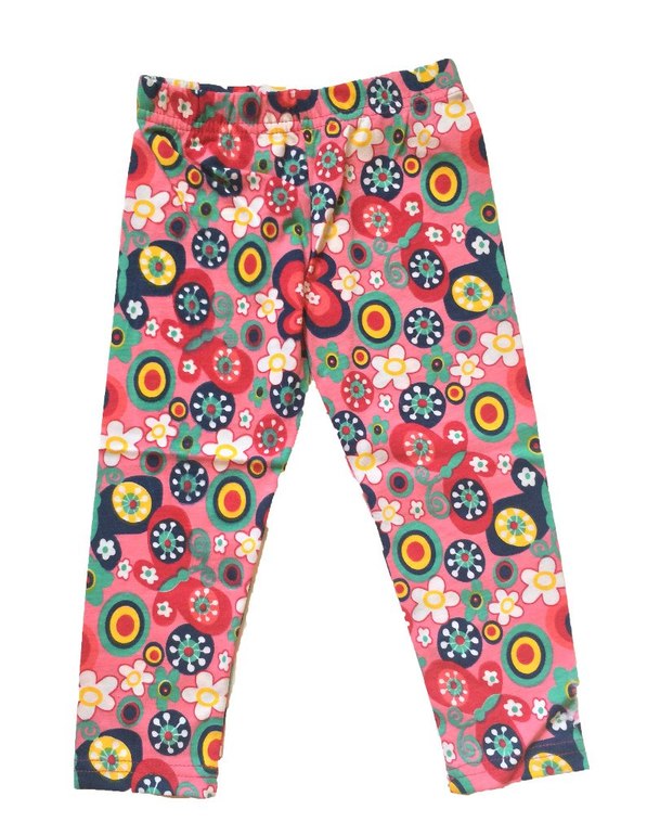 Лосины. Цвет розовый + принт цветы. 95% хлопок, 5% лайкра.