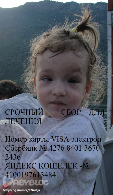 ),После лечения у Яны были новые достижения, заметно понизился тонус, научились вставать на четвереньки, пить из кружки ,ходить под руки, и в интеллекте заметны были сдвиги, очень внимательная стала к тому что её окружает…а сейчас стоим в физическом развитии, очень нужны занятия! ПОЭТОМУ, Так как лечение там нам пошло на пользу мы хотели бы еще раз попасть в институт Милошевича, уже забронировала квартиру на собранные деньги, и необходимо оплатить самолет и собрать деньги на само лечение. Институт Милошевича на 4недели =20 рабочих дней. прием врача =20е, переводчик = 30е =1200 руб., кинезотерапия - 11евро* 20дней =220е=9тыс, жемчужные ванны =9,5 * 20дней= 95е= 7600руб, кинезотерапия в ванной – 11евро *20 дней = 8800,на дому: БОБАТ 1 час- 25 евро 28 дней = 28 000руб. перелет туда и обратно = 33670руб на меня и на Яну, Проживание без питания – 40е сутки *33дней = осталось доплатить 36 000руб