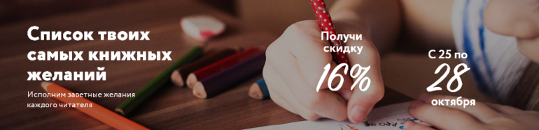 Добавляйте с 4 по 24 октября любимые книги - 25-28 октября покупайте их с дополнительной скидкой 16%.