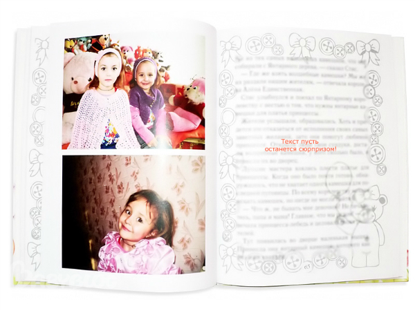 Такие книги очень нравятся детям и стали весьма популярны сейчас, их не стыдно предлагать, возможно вы уже слышали о них. Родители заполняют подробную анкету про своего ребёнка, а издатель пишет сказки про этого ребёнка в качестве героя на основе анкеты, учитываются интересы, вкусы и предпочтения малыша, его друзья, его родные и т.п. На обложке и в книге печатаются фото самого ребёнка.