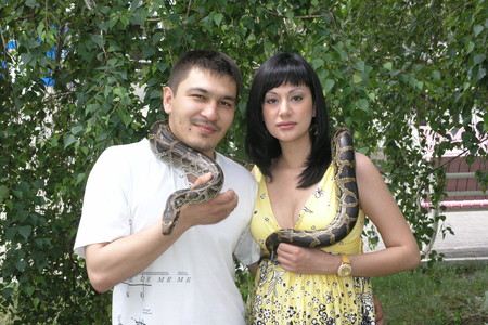 Вот как то гуляли с мужем в центре и увидели фотографа со змей :) мне так захотелось с ней сфоткаться! Муж сначала не очень хотел, а потом вспомнил что беременным нельзя отказывать и поддался:)) Вот что получилось...она такая холодненькая брррр....