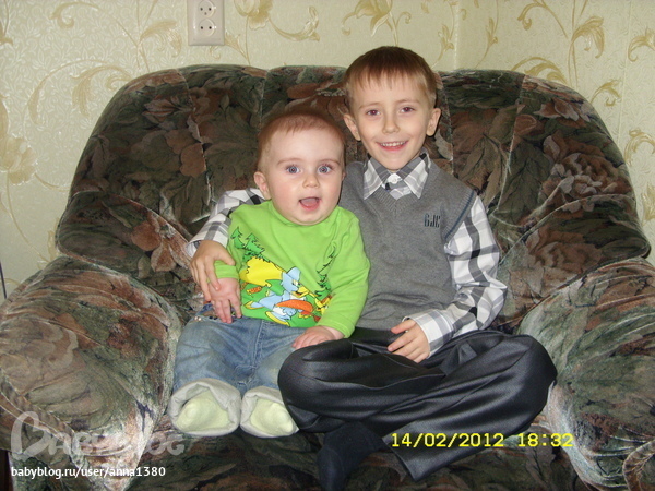 )))) Старший у  меня  от первого брака))) Разные не много. А так всё  хорошо растем  развиваемся. скоро  думаю  уже  пойдет. Худой  не могу  откормить его никак))))