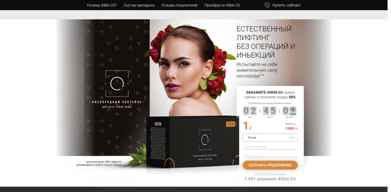 Натуральное средство 4Skin O2 лифтинг от морщин - ощути живительную силу кислорода, купить, отзывы ...