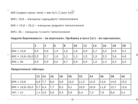 Пасибо, там написано "Ваш индекс массы тела до беременности был 23.74, что свидетельствует о весе в пределах нормы. Во время беременности Вы должны будете прибавить примерно 10–14 кг."