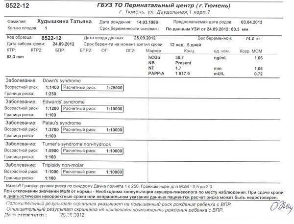 Так вроде все хорошо, только не вижу показаний по косточке носа и ТВП (толщина воротникового пространства)