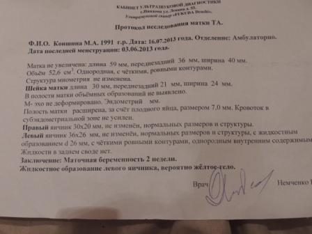 Плодное яйцо 7.0мм. в заключении написали: Маточная беременность 2 недели.