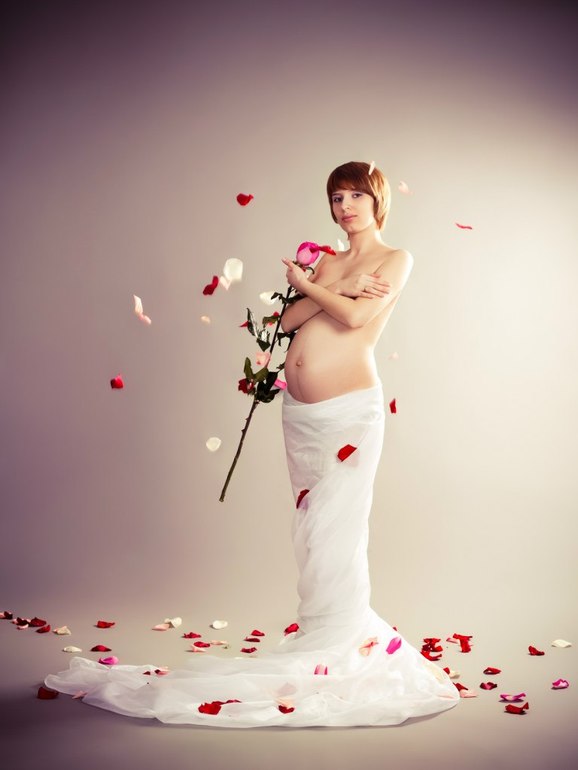 Мы вообще делали на 23 неделе, потому что я сама иногда снимаю беременных и знаю, как им тяжело дается 2-3 часа съемки. Но у меня на этом сроке был уже животик, не огромное пузо, как сейчас, а милый животик))