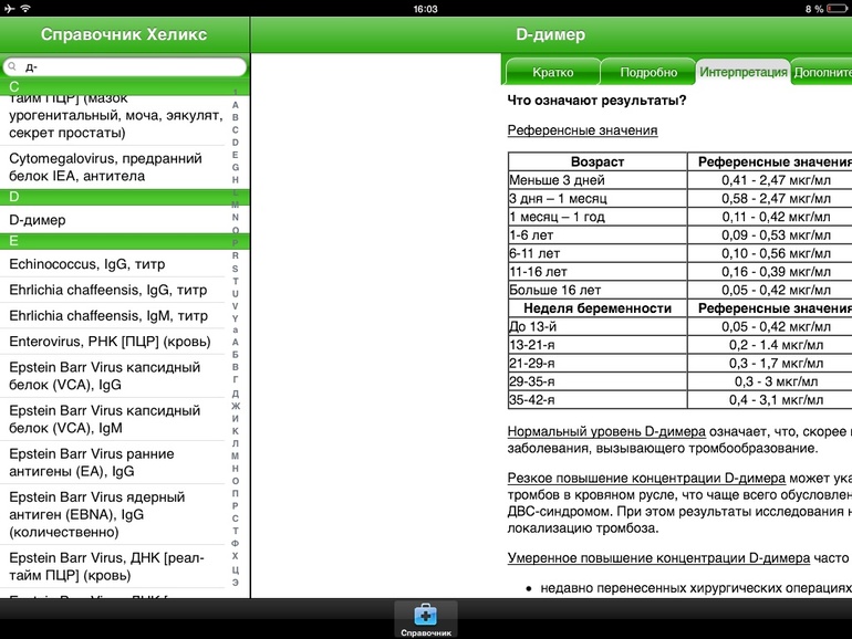 Анализы, инфекцииПомогите, пожалуйста! Беременность 15-16 недель, АФС, колю каждый день фраксипарин 0,3 в живо и табл.Ангиовит 1т. 1раз в день. Сегодня получила результаты анализов д-димера: 0,83mg/l FEU (норма 0,0-0,55mg/l FEU). Всегда сдавала в другой лаборатории, была норма и др единицы измерения! К врачу через 2 недели, он в отпуске, теперь переживаю, нормальные это значения для моего срока беременности или нет. Кто сталкивался с такими значениями,помогите, пожалуйста!