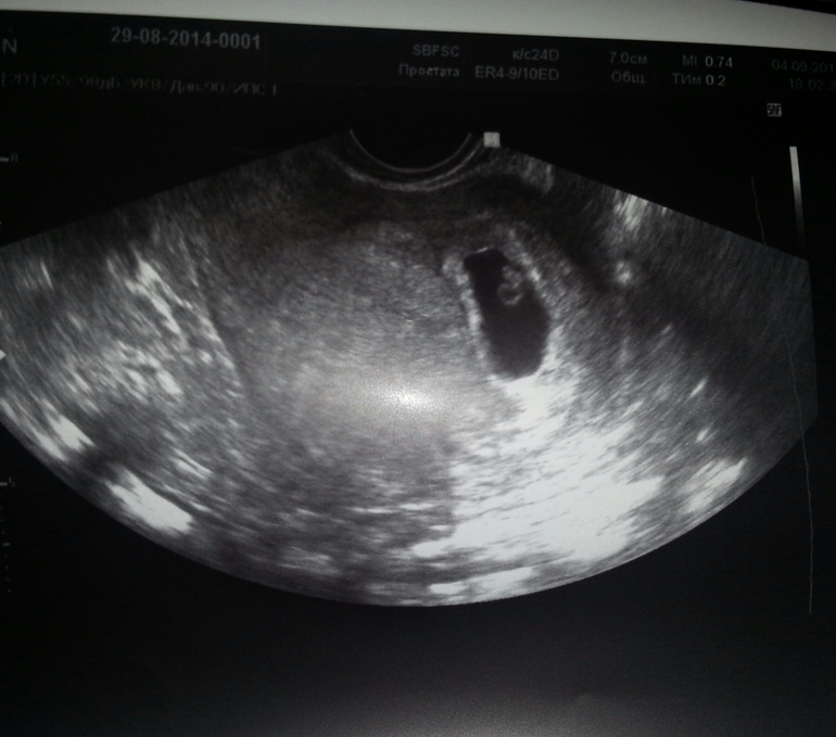 Результаты: УЗИ, КТГ, доплера, скринингаСлава Богу все хорошо! Это УЗИ успокоило меня) итак: ПЯ аж целых 21мм!!! КТР 4,2мм! Малюсечка))) но уже сердечко бьется!!! ЧСС 180 уд/мин! Кистозное ЖТ 30мм так и есть, но сказали, что к 10 неделям должно рассосаться! Ну вот и все)) я безмерно счастлива! Вот вроде недавно Стеша была 5мм)) и уже второй малыш растет!! Это не передать словами!! Ну и фото)